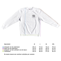 Deze sweater is speciaal gemaakt voor de overstromingscampagne van het weeshuis in Zambia. Met de aankoop van deze sweater steun je de wederopbouw van Camp Phoenix. Meer lezen over het project? Klik danhier. De sweaters vallen oversized en zijn unisex. De band bij de taille valt wel op maat houd hier rekening mee. De achterkant van de sweater is niet bedrukt. Bekijk bij de afbeeldingen de maattabel als je twijfelt over de maat die je wilt bestellen.