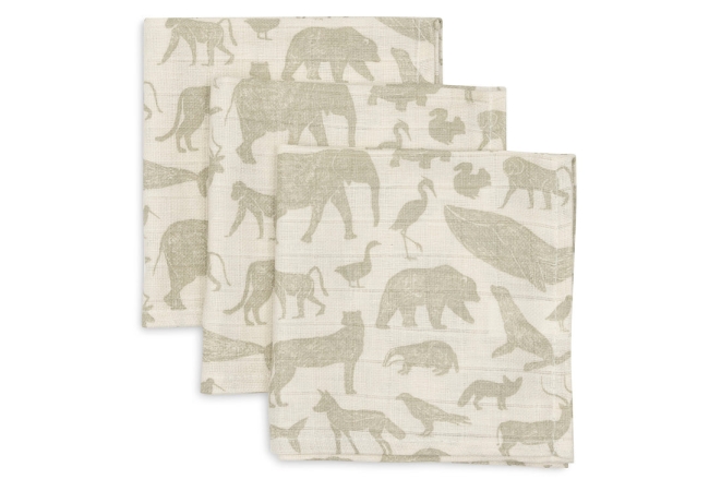 Jollein Hydrofiel Monddoekje Animals - Olive Green - 3 Stuks