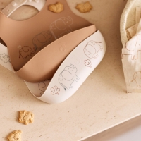 Deze set van twee siliconen slabbetjes uit de Elephant Tales collectie is perfect voor je kleintje. Het ene slabbetje heeft een schattige all-over print met olifantjes op een oatmeal ondergrond terwijl de andere slab een biscuit kleur heeft met losse olifantjes. Beide slabbetjes zijn gemaakt van flexibel en gemakkelijk schoon te maken siliconen ideaal voor de eerste maaltijden samen.