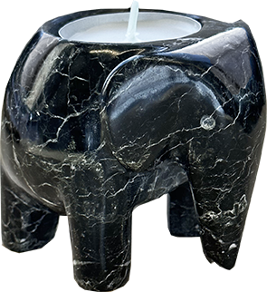 Speksteen Olifanten Waxinelichthouder (klein) - Zwart Wit