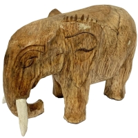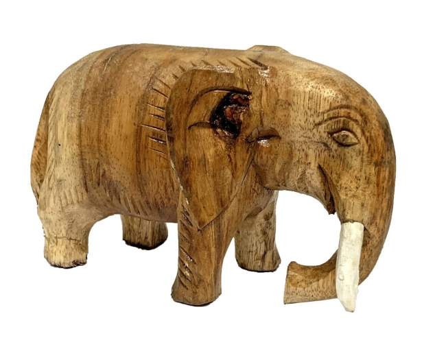 Dit beeld is gemaakt van hout. In verband met doffe plekjes en kleine krasjes is het beeld afgeprijsd. Formaat (lxbxh): 16 cm x 7 cm x 11 cm.
