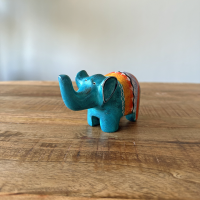 Dit vrolijke olifantje wil je toch in huis hebben? Dit beeldje verkopen we nog in twee andere kleuren blauw en rood. Formaat: 10 cm x 7 cm.