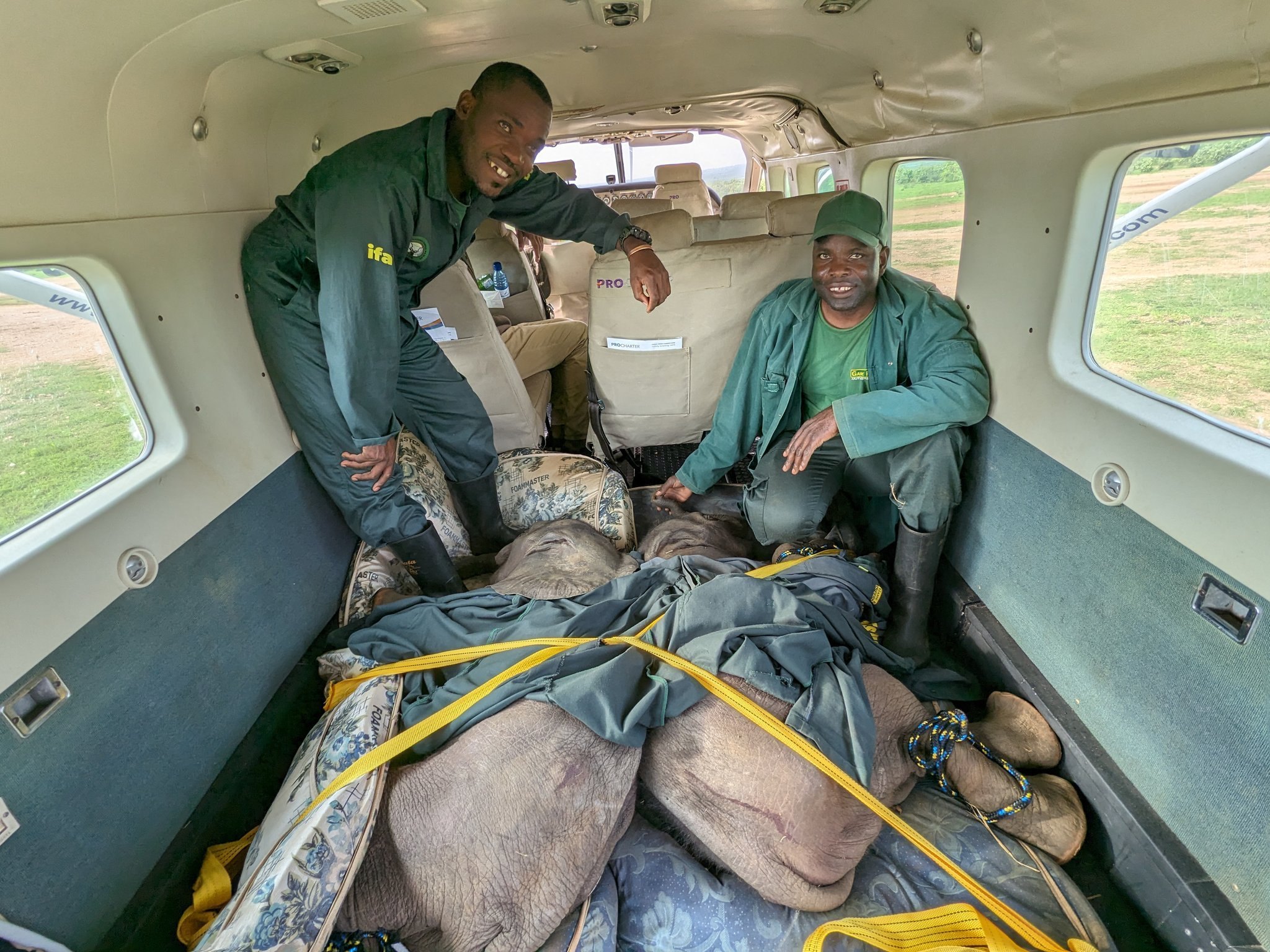 De twee overgebleven babyolifantjes werden pas later gevonden. Het kleinste babyolifantje was pas 3 weken oud en werd gevonden in een greppel. Hij zat vast en had een machetewond op zijn voorhoofd. Het andere olifantje werd gevonden in de buurt van een kliniek, zijn leeftijd werd geschat tussen de 5 à 6 weken.